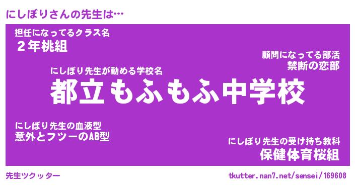 | ファンタジー風あだ名 | 『ニシフェル』『エターナルニシボリー』 |