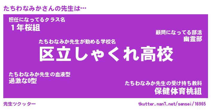 | ヒーロー風カッコイイあだ名 | 『スーパータチワナミカ』『銀牙騎士タチ』 |