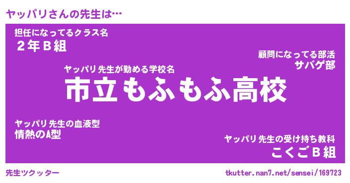 | 意味不明あだ名 | 『ペロリンヤッパリ』『永久保存ヤッパリ』 |