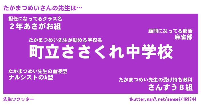 | ヒーロー風カッコイイあだ名 | 『スーパータカマツメイ』『黄金騎士タカ』 |