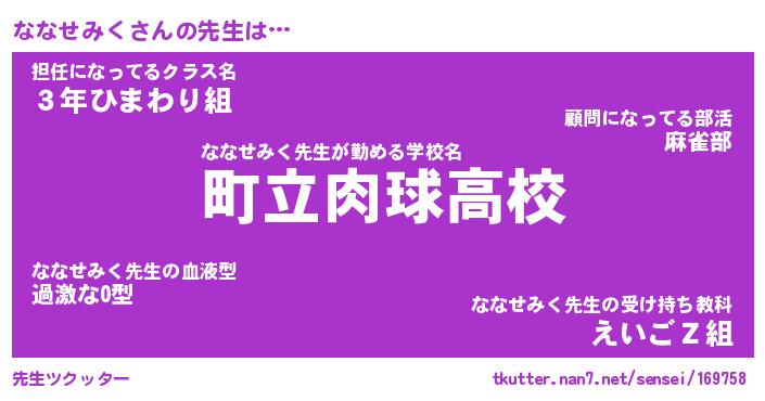 | 胡散臭い通販商品みたいなあだ名 | 『億万長者になれる水晶球…その名も「ななせみく」』 |