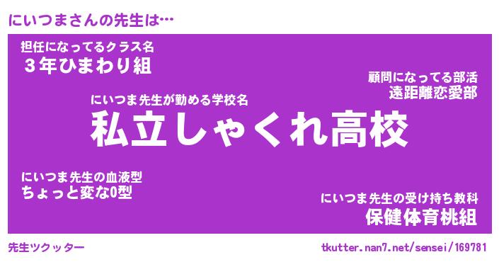 | 意味不明あだ名 | 『ペロリンにいつま』『永久保存にいつま』 |