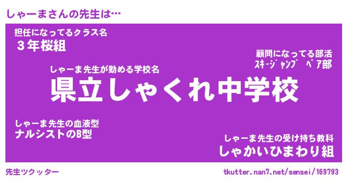 | 意味不明あだ名 | 『ペロリンしゃーま』『永久保存しゃーま』 |