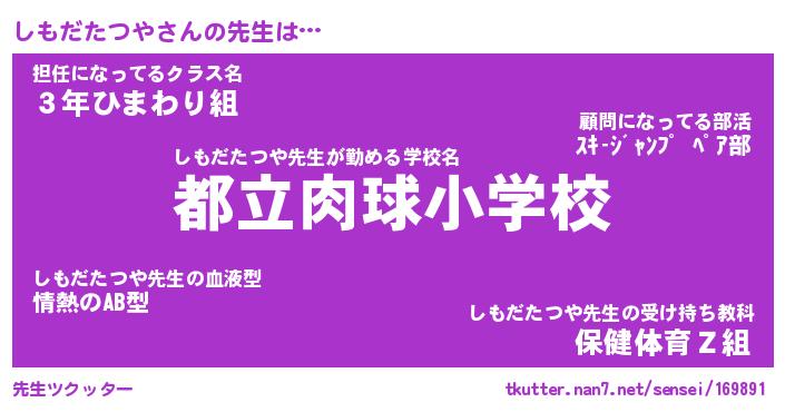 | 男性向けラノベタイトル風あだ名 | 『しもだたつやの憂鬱』 |