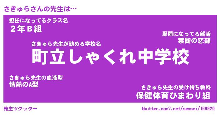 | 伝説のあだ名 | 『封印されしスナイパーさきゅら』 |