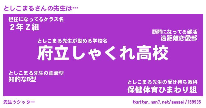 | ファンタジー風あだ名 | 『トシフェル』『エターナルトシコマルー』 |