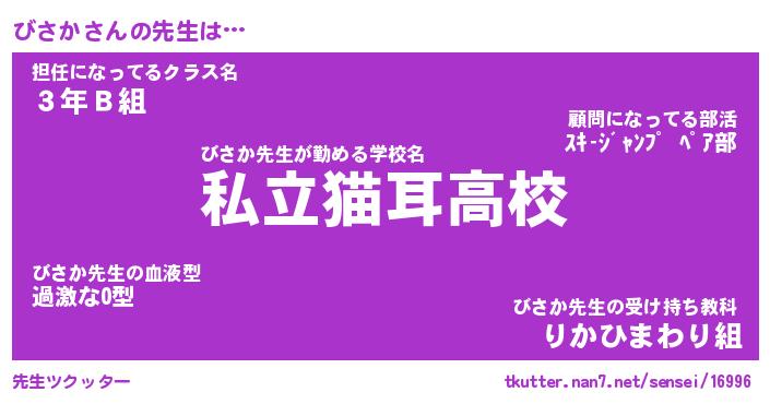 | ヒーロー風カッコイイあだ名 | 『スーパービサカ』『ウルトラびさかマン』 |