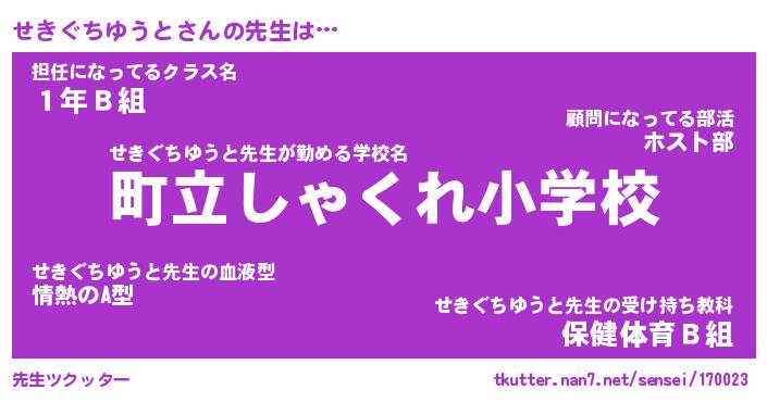 | 意味不明あだ名 | 『ペロリンせきぐちゆうと』 |