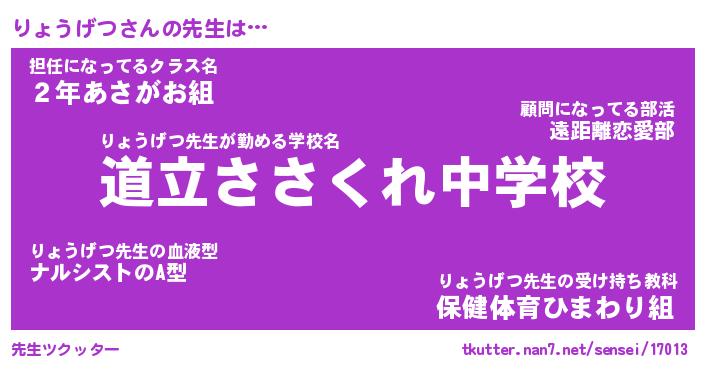| ファンタジー風あだ名 | 『リョフェル』『エターナルリョウゲツー』 |
