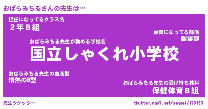 | 伝説のあだ名 | 『伝説のスナイパーおばらみちる』 |