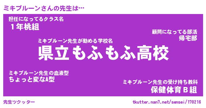 | ヒーロー風カッコイイあだ名 | 『スーパーミキプルーン』『天弓騎士ミキ』 |