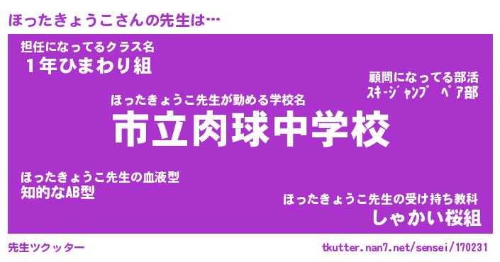 | 意味不明あだ名 | 『ペロリンほったきょうこ』 |