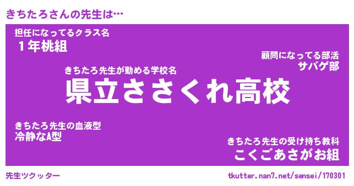 | ヒーロー風カッコイイあだ名 | 『スーパーキチタロ』『暗黒騎士キチ』 |