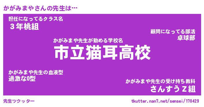 | ヒーロー風カッコイイあだ名 | 『スーパーカガミマヤ』『天弓騎士カガ』 |