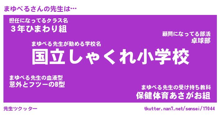 | 伝説のあだ名 | 『伝説のスナイパーまゆベる』 |