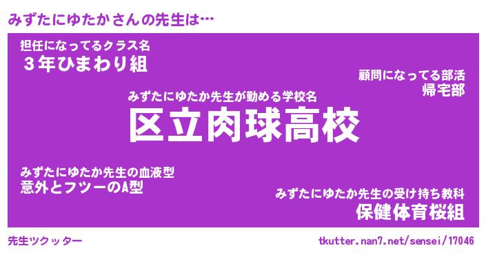 | ヘコむあだ名 | 『みずふぇ~』『酢こんぶ』 |