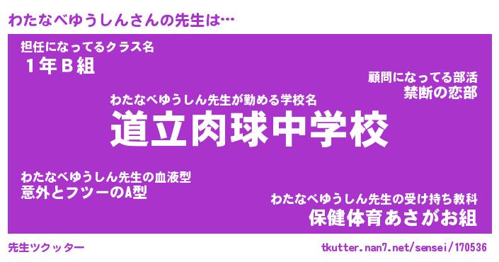 | ポケモン風あだ名 | 『ワタチュウ』『ワタナダネ』 |