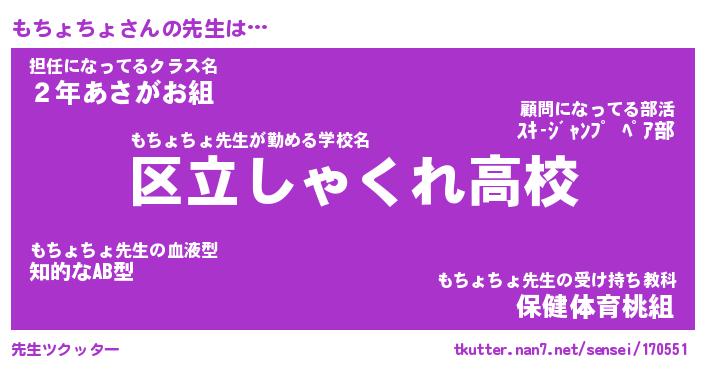 | ファンタジー風あだ名 | 『モチフェル』『エターナルモチョチョー』 |