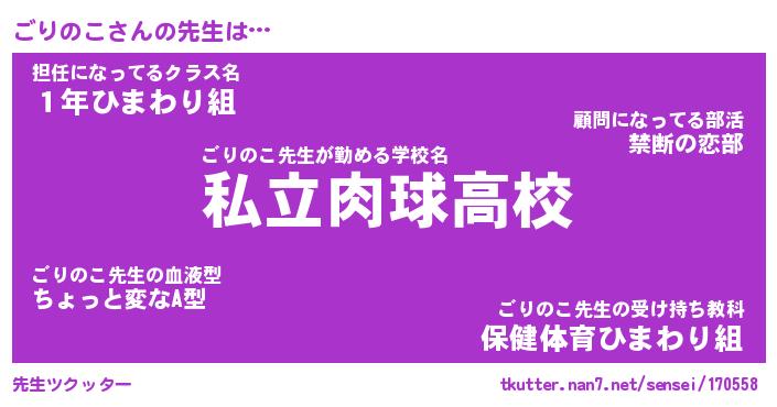 | 意味不明あだ名 | 『ペロリンごりのこ』『永久保存ごりのこ』 |