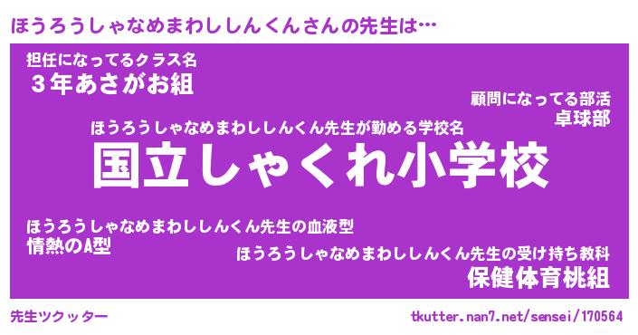 | ヒーロー風カッコイイあだ名 | 『スーパーホウロウシャナメマワシシンクン』 |