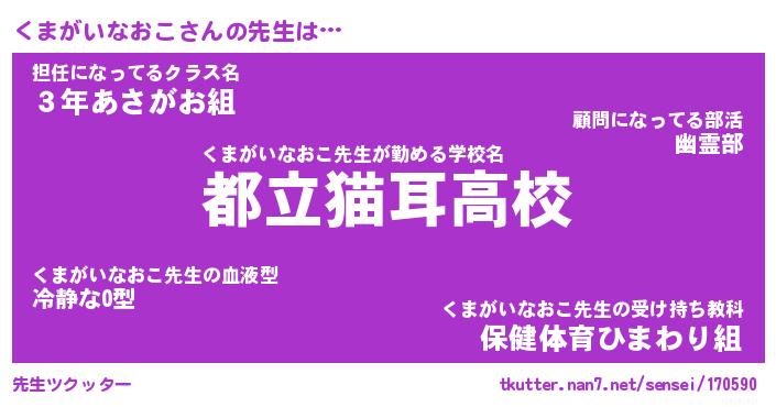 | 2回繰り返すあだ名 | 『くまくま』『くくまま』『ぬめぬめ』 |