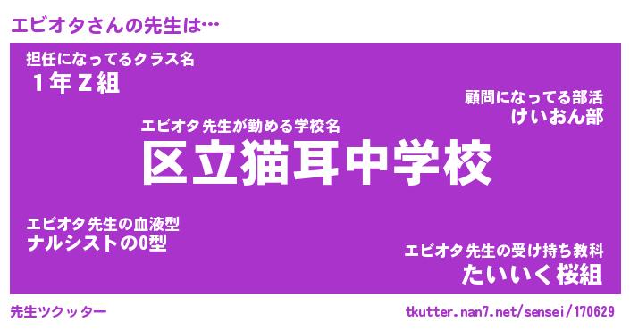 | 意味不明あだ名 | 『ペロリンエビオタ』『永久保存エビオタ』 |