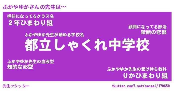 | ファンタジー風あだ名 | 『フカフェル』『エターナルフカヤユカー』 |