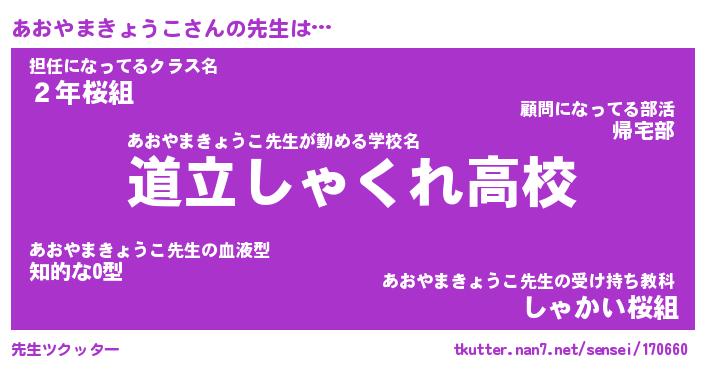| ヒーロー風カッコイイあだ名 | 『スーパーアオヤマキョウコ』 |