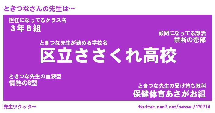 | ファンタジー風あだ名 | 『トキフェル』『エターナルトキツナー』 |