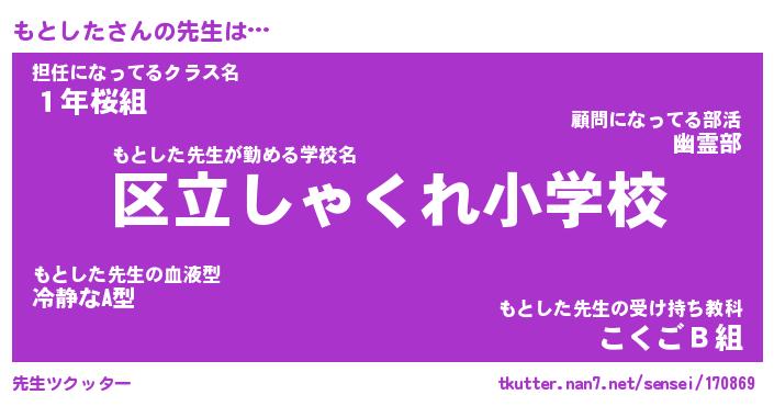 | 意味不明あだ名 | 『ペロリンもとした』『永久保存もとした』 |