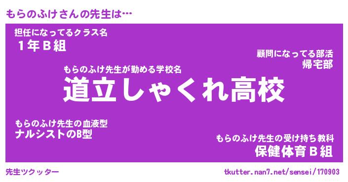 | ヘコむあだ名 | 『もらっふぃ~』『つくし』『もらお』 |