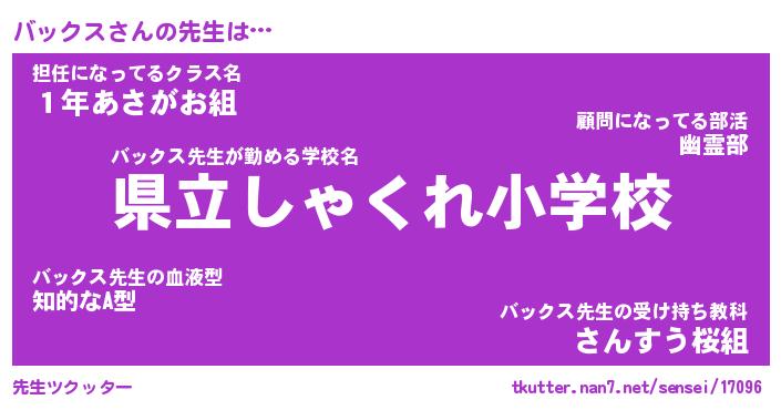 | 男性向けラノベタイトル風あだ名 | 『バックスの憂鬱』 |