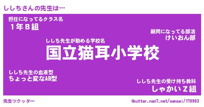 | ヘコむあだ名 | 『ししにー』『なまこ酢』『ししお』 |