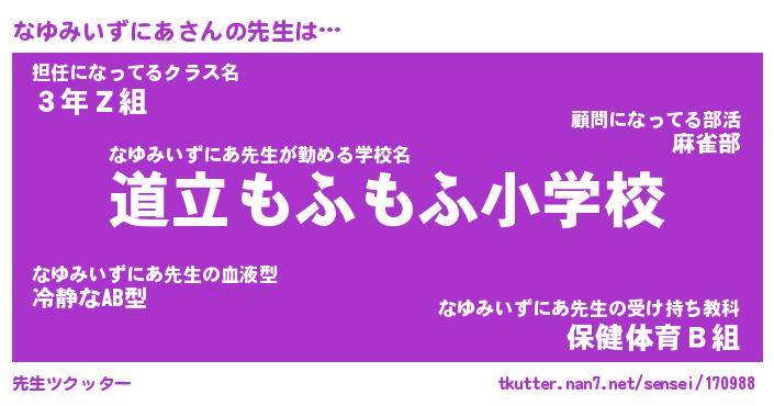 | ヘコむあだ名 | 『なゆにゅー』『なまこ酢』『なゆを』 |