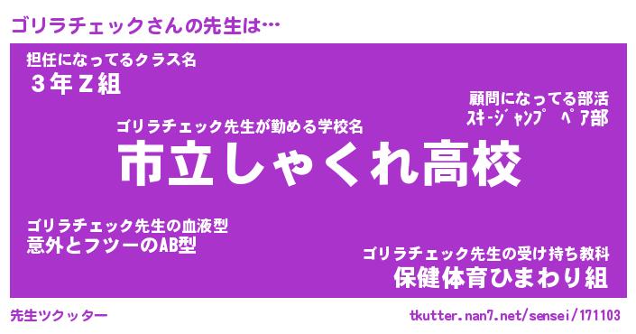 | 伝説のあだ名 | 『伝説のスナイパーゴリラチェック』 |