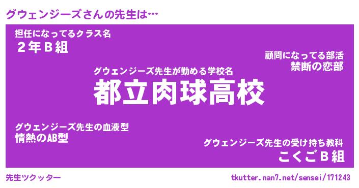 | 男性向けラノベタイトル風あだ名 | 『グウェンジーズの憂鬱』 |