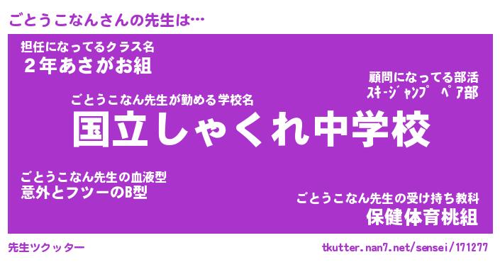 | 伝説のあだ名 | 『伝説のスナイパーごとうこなん』 |