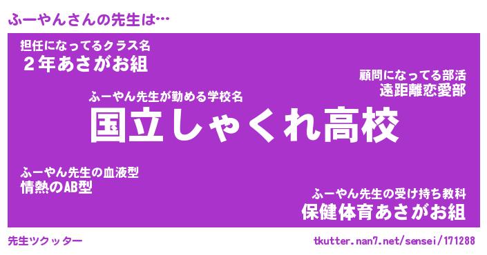 | ポケモン風あだ名 | 『フーチュウ』『フーヤダネ』 |