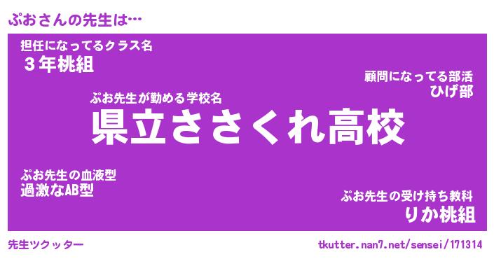 | ヘコむあだ名 | 『ぷおもー』『酢こんぶ』『ぷおを』 |