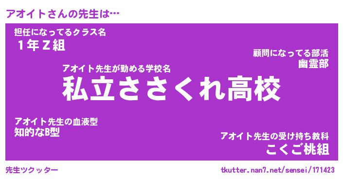 | 2回繰り返すあだ名 | 『アオアオ』『アアオオ』『うろうろ』 |