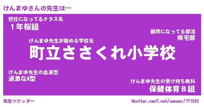 | 意味不明あだ名 | 『ペロリンけんまゆ』『永久保存けんまゆ』 |