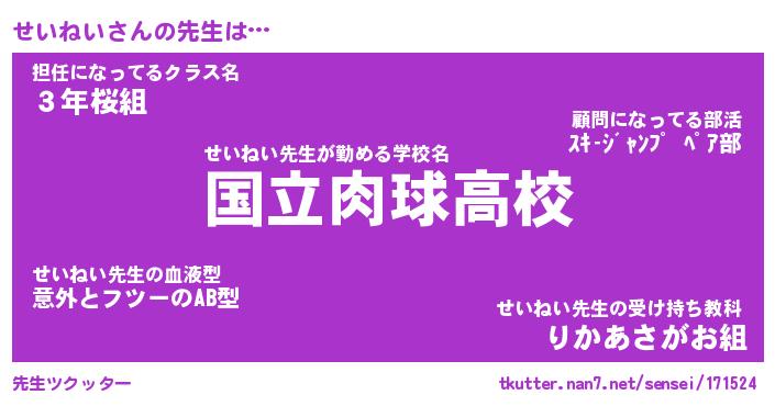 | 意味不明あだ名 | 『ペロリンせいねい』『永久保存せいねい』 |