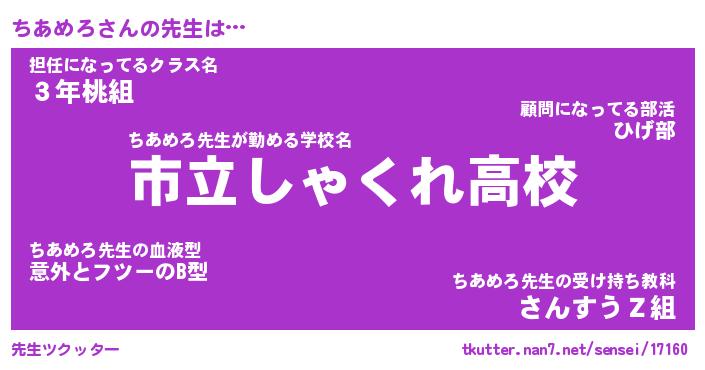 | 意味不明あだ名 | 『ペロリンちあめろ』『永久保存ちあめろ』 |