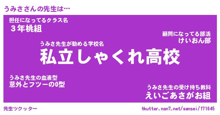 | 伝説のあだ名 | 『伝説のスナイパーうみさ』 |