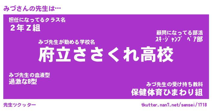 | ヘコむあだ名 | 『みづもー』『豆乳』『みづ太郎』 |