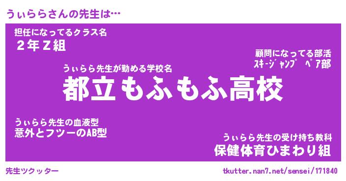 | 自動車の名前っぽいあだ名 | 『プリウィ』『ウスラー』『ヴィッウ』 |