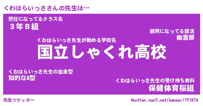 | 胡散臭い通販商品みたいなあだ名 | 『必ず成功する霊験あらたかなお札…その名も「くわはらいっさ」』 |