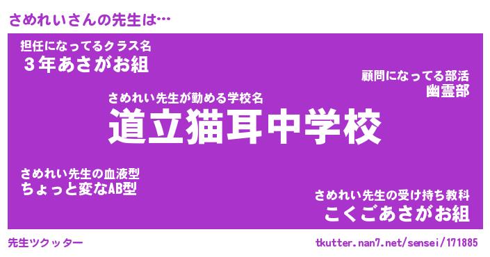 | 意味不明あだ名 | 『ペロリンさめれい』『永久保存さめれい』 |