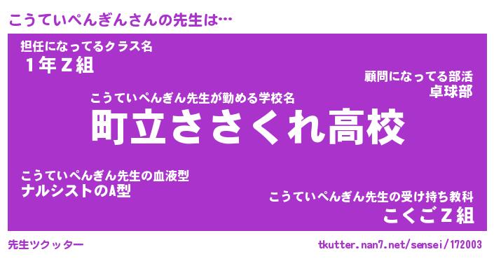 | 意味不明あだ名 | 『ペロリンこうていぺんぎん』 |