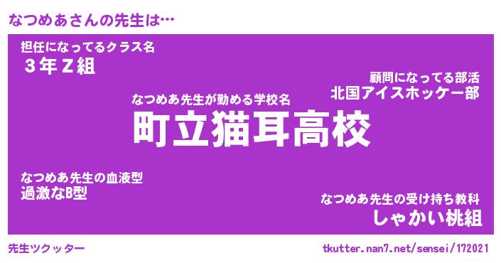 | 意味不明あだ名 | 『ペロリンなつめあ』『永久保存なつめあ』 |
